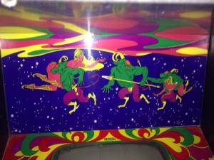 I was lucky enough to happen upon a Craigslist listing for a very rare game shortly after it was posted–a Universal Cosmic Guerilla! I had seen a cocktail version of this game pop up on Craigslist in Indianapolis not too long before, but with Universal games, I think the uprights are what are really worth having. This cabinet is just beautiful!